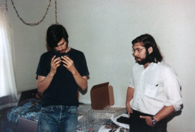 Before they made computers, the founders of Apple used to make hardware for hacking into the phone system. This photo was taken by Margret Wozniak in 1975. Click to see a larger version.